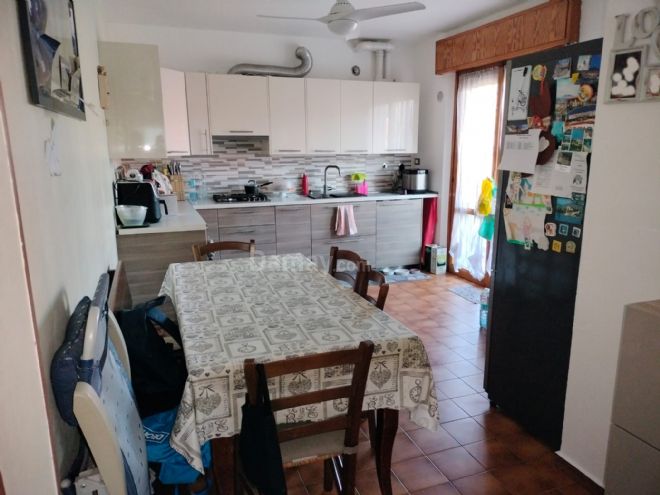 VILLA VERUCCHIO, in palazzina anni 80, da tre unità abitative, proponiamo appartamento posto al P1 composto da soggiorno, cucina, 3 camere di cui 2 matrimoniali, bagno, disimpegno, tre balconi con garage di mq. 15,40 e cantina di mq. 14,35 confinanti, posti al piano primo sottostrada. Bagno, impianto elettrico e riscaldamento con stufa a pellet, realizzati nuovi nel 2015. APE in corso di realizzazione.